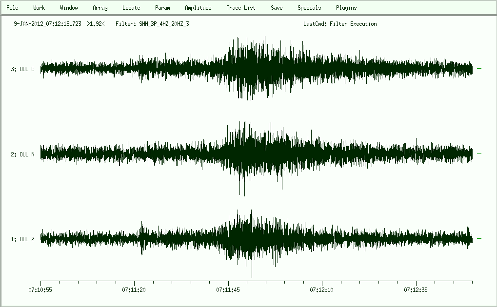 Below is shown Bothnian Bay region, Sweden earthquake as recorded by permanent seismograph
