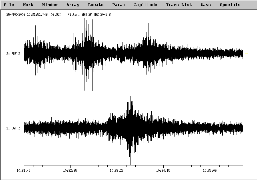 Origin time (GMT): Apr 25 2009 10:32:45.3 Local time Apr 25 2009 13:32:45.3