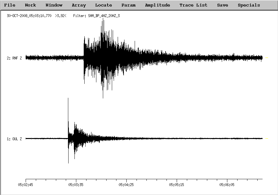 Origin time (GMT): Oct 30 2008 05:03:19.3 Local time Oct 30 2008 07:03:19.3