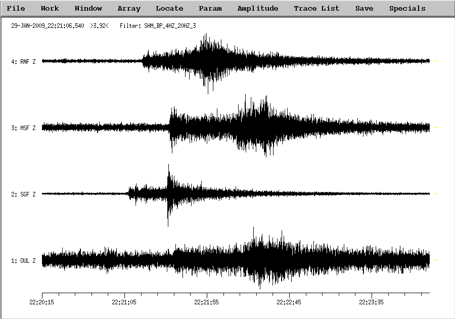 Origin time (GMT): Jan 29 2009 22:20:35.5 Local time Jan 30 2009 00:20:35.5