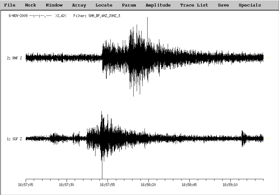 Origin time (GMT): Nov 06 2009 16:57:29.1 Local time Nov 06 2009 18:57:29.1