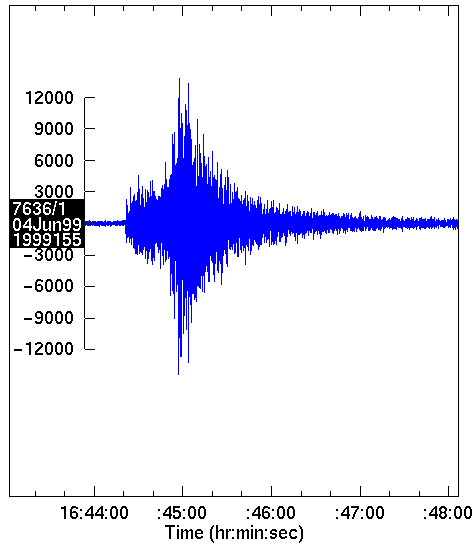 - Origin time (GMT): Jun 04 1999 16:43:39.8: Local time Jun 04 1999