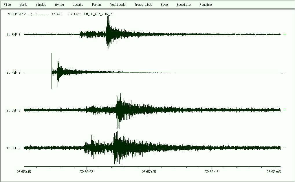 Below is shown Kuusamo earthquake as recorded by permanent seismograph