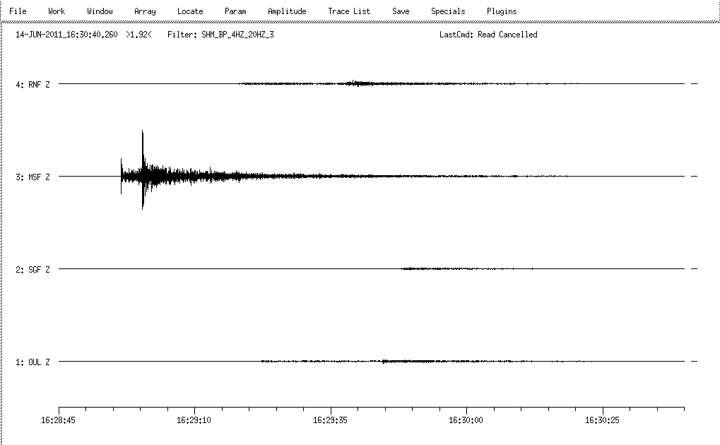 Origin time (GMT): Jun 14 2011 16:28:51.7 Local time Jun 14 2011 19:28:51.7