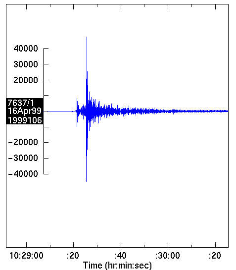 - Origin time (GMT): Apr 16 1999 10:29:14.5: Local time Apr 16 1999