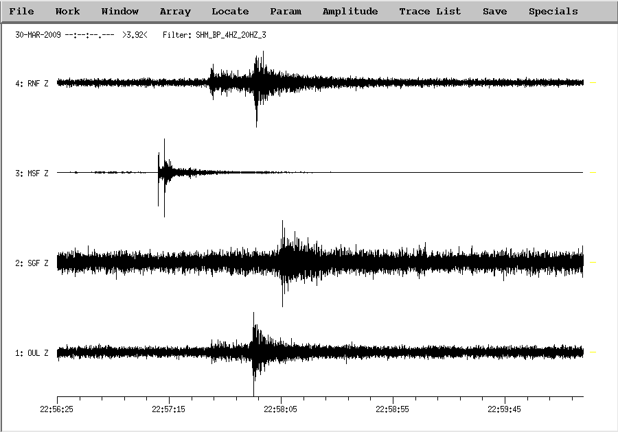Origin time (GMT): Mar 30 2009 22:57:07.1 Local time Mar 31 2009 01:57:07.1