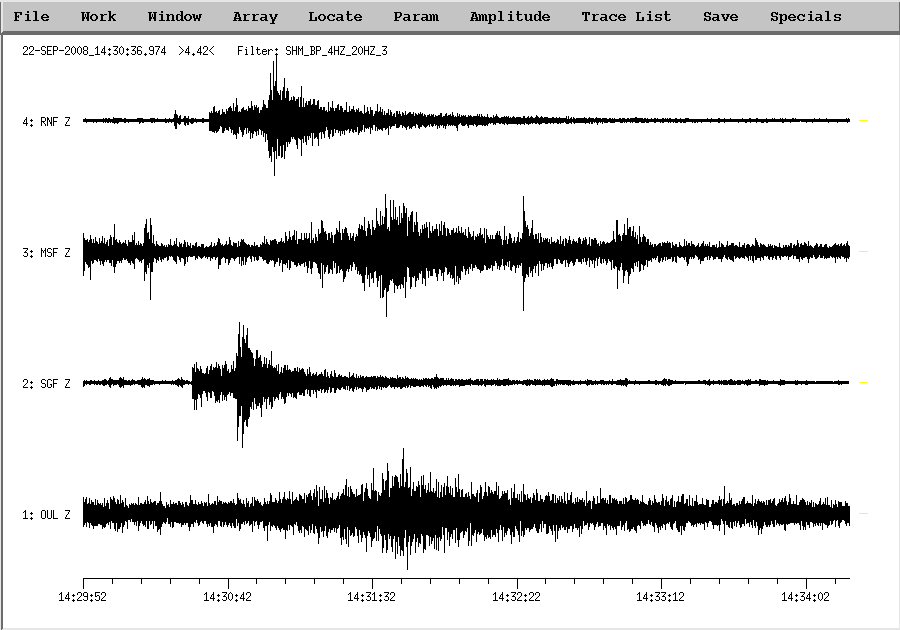 Earthquake in Muonio(GMT): Sep 22 2008 14:30:08.3