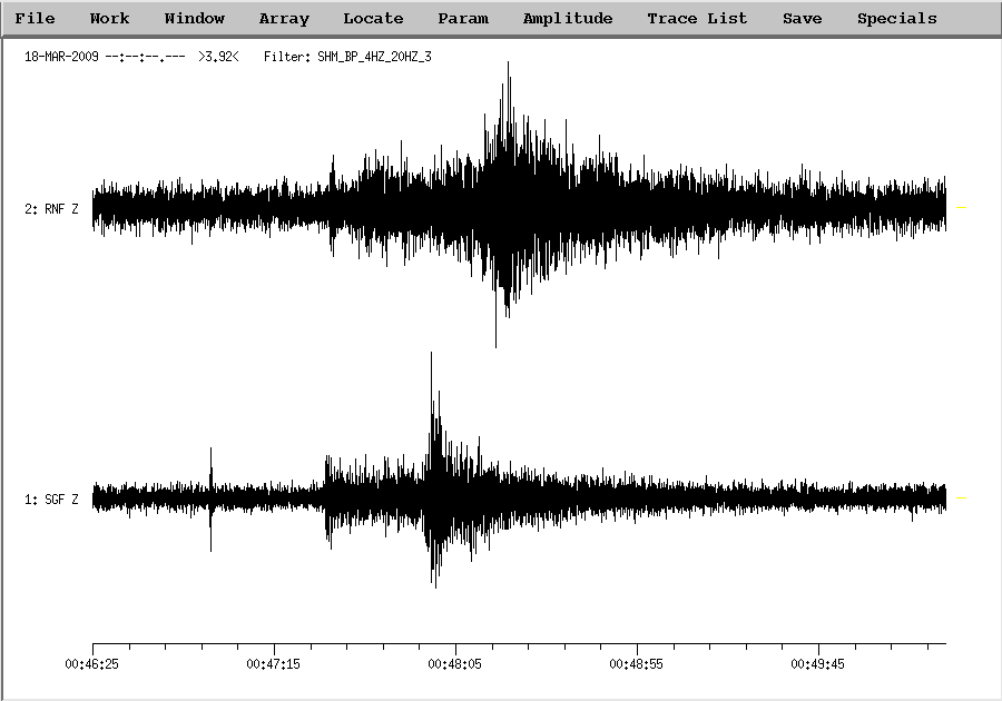 Origin time (GMT): Mar 18 2009 00:46:50.3 Local time Mar 18 2009 02:46:50.3