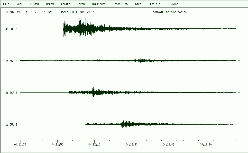 Origin time (GMT): Nov 21 2011 04:11:36.9 Local time Nov 21 06:11:36.9 2011