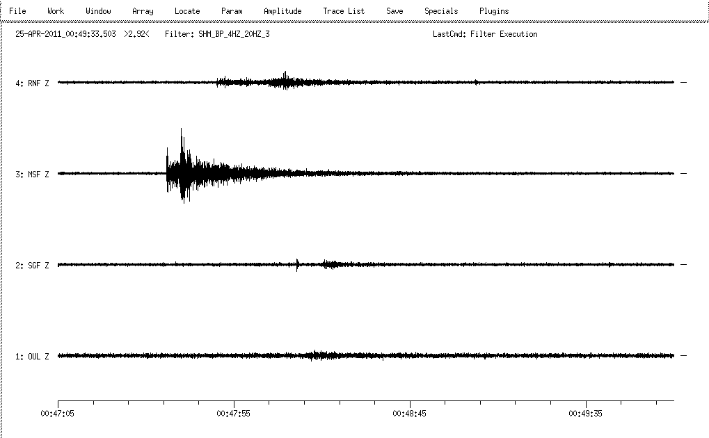 Origin time (GMT): Apr 25 2011 00:47:30.3 Local time Apr 25 2011 03:47:30.3
