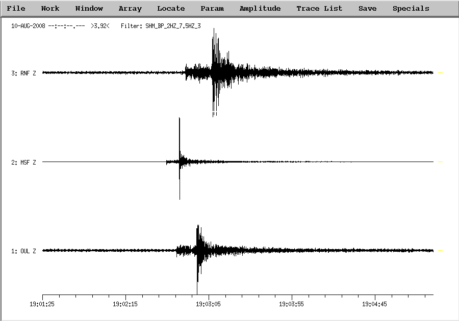 Below is shown Pudasjärvi earthquake as recorded by permanent seismograph