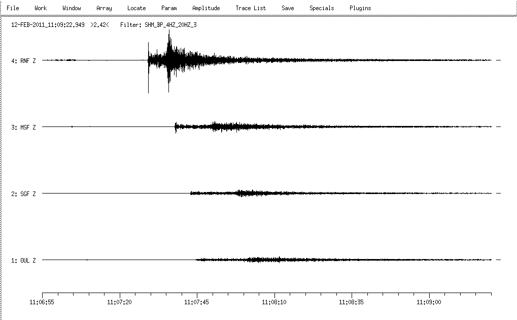 Origin time (GMT): Feb 12 2011 11:07:21.0 Local time Feb 12 2011 13:07:21.0