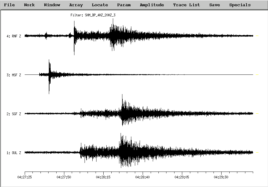 Below is shown Finland-Russia border zone, NW Russia earthquake as recorded by permanent seismograph