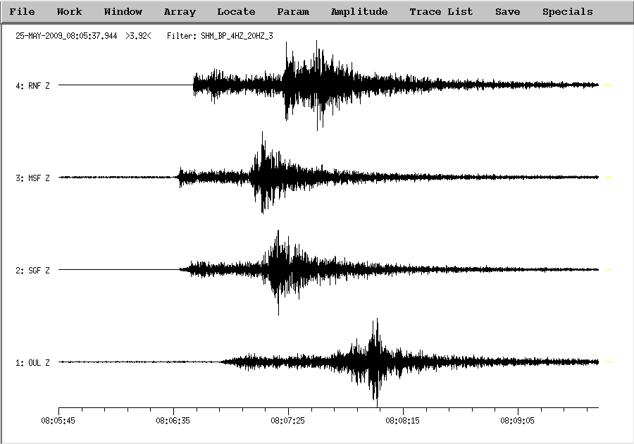 Origin time (GMT): May 25 2009 08:05:50.8 Local time May 25 2009 11:05:50.8