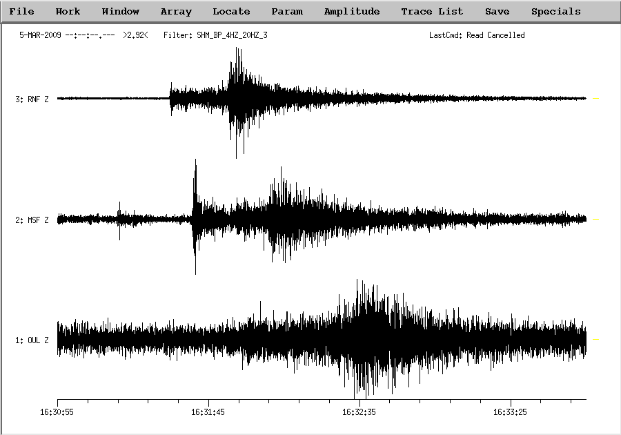 Origin time (GMT): Mar 05 2009 16:31:05.0 Local time Mar 05 2009 18:31:05.0