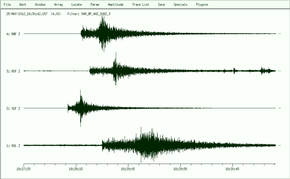 Below is shown Savukoski earthquake as recorded by permanent seismograph