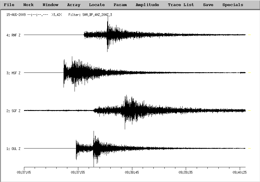 Origin time (GMT): Aug 15 2009 09:37:31.3 Local time Aug 15 2009 12:37:31.3