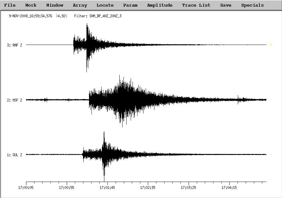 Origin time (GMT): Nov 09 2008 17:00:42.4 Local time Nov 09 2008 19:00:42.4
