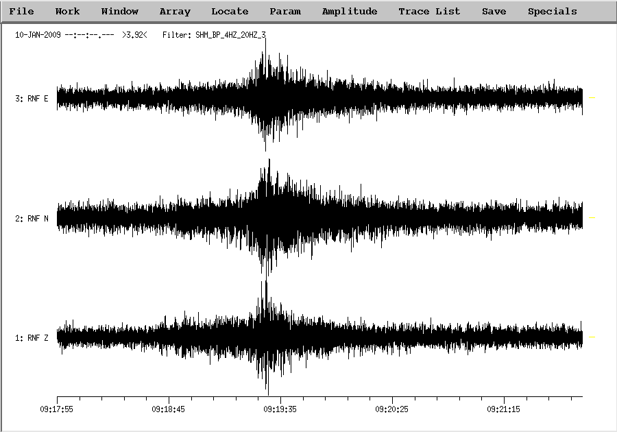 Origin time (GMT): Jan 10 2009 09:18:00.2 Local time Jan 10 2009 11:18:00.2