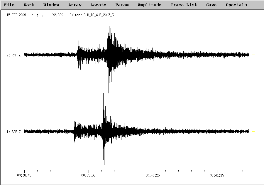Origin time (GMT): Feb 15 2009 00:38:55.4 Local time Feb 15 2009 02:38:55.4