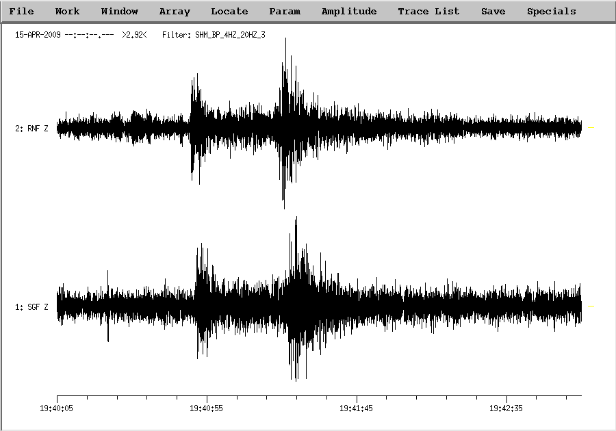 Origin time (GMT): Apr 15 2009 19:40:10.1 Local time Apr 15 2009 22:40:10.1