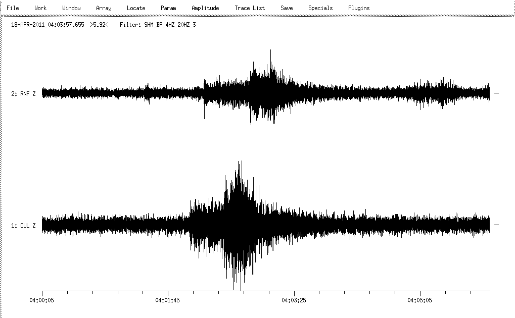 Origin time (GMT): Apr 18 2011 04:01:23.4 Local time Apr 18 2011 07:01:23.4