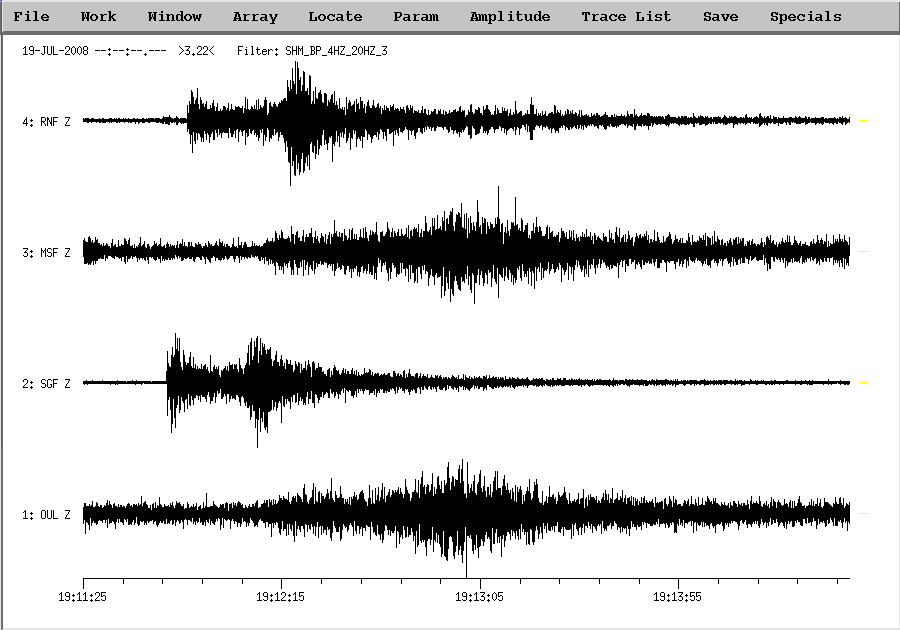 Origin time (GMT): Jul 19 2008 19:11:19.1 Local time Jul 19 2008 22:11:19.1