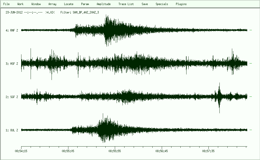 Origin time (GMT): Jun 23 2012 08:54:29.4 Local time Jun 23 2012 11:54:29.4