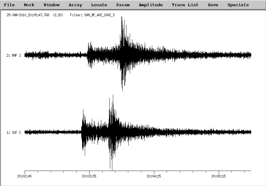 Origin time (GMT): Jan 25 2010 20:03:00.4 Local time Jan 25 2010 22:03:00.4