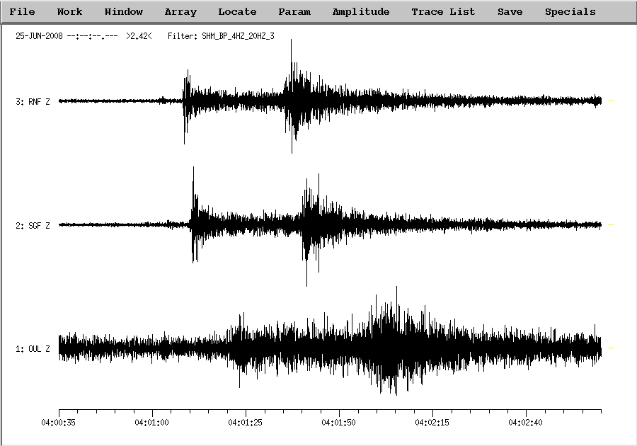 Origin time (GMT): Jun 25 2008 04:00:31.9 Local time Jun 25 2008 07:00:31.9