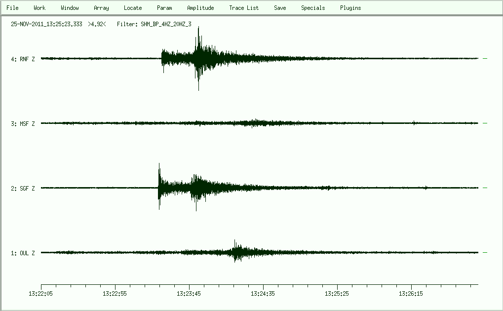 Origin time (GMT): Nov 25 2011 13:22:53.7 Local time Nov 25 2011 15:22:53.7