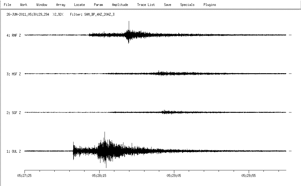 Origin time (GMT): Jun 26 2011 05:27:35.1 Local time Jun 16 2011 08:27:35.1