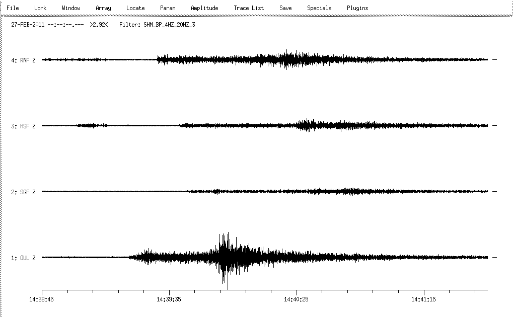 Origin time (GMT): Feb 27 2011 14:38:40.3 Local time Feb 27 2011 16:38.40.3
