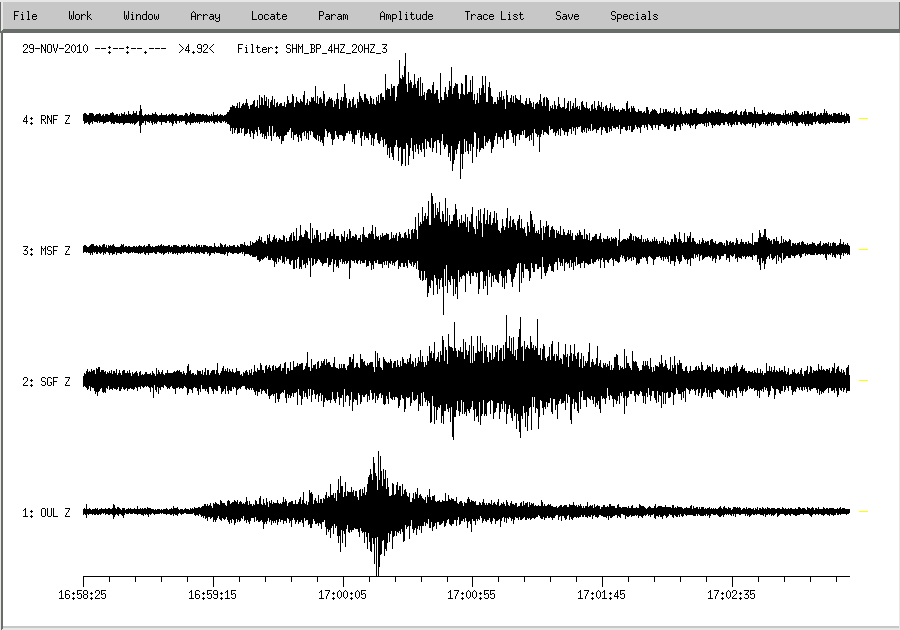 Origin time (GMT): Nov 29 2010 16:58:01.4 Local time Nov 29 2010 18:58:01.4