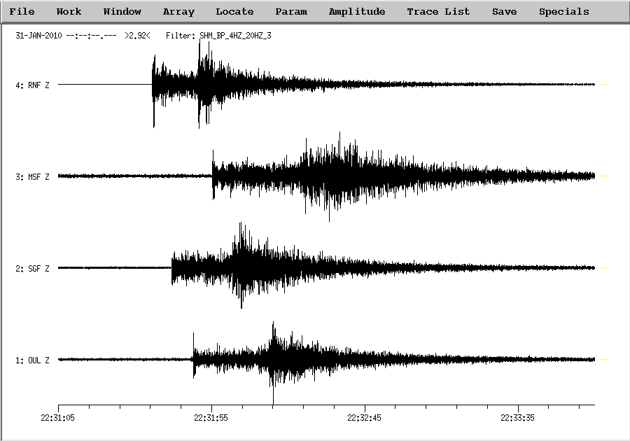 Origin time (GMT): Jan 31 2010 22:31:16.0 Local time Feb 01 2010 00:31:16.0