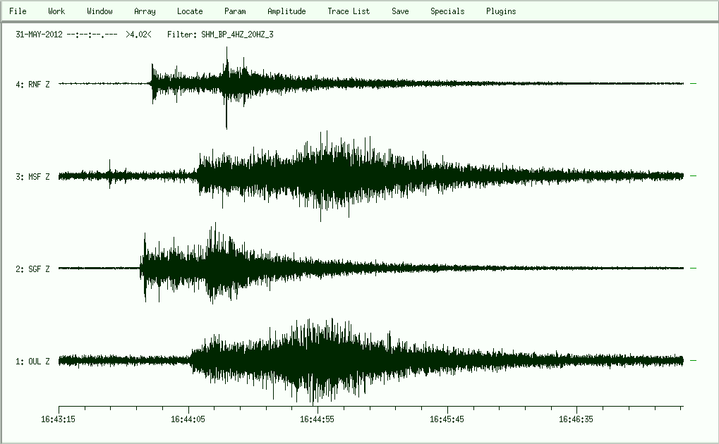 Origin time (GMT): May 31 2012 16:43:16.4 Local time May 31 2012 19:43:16.4